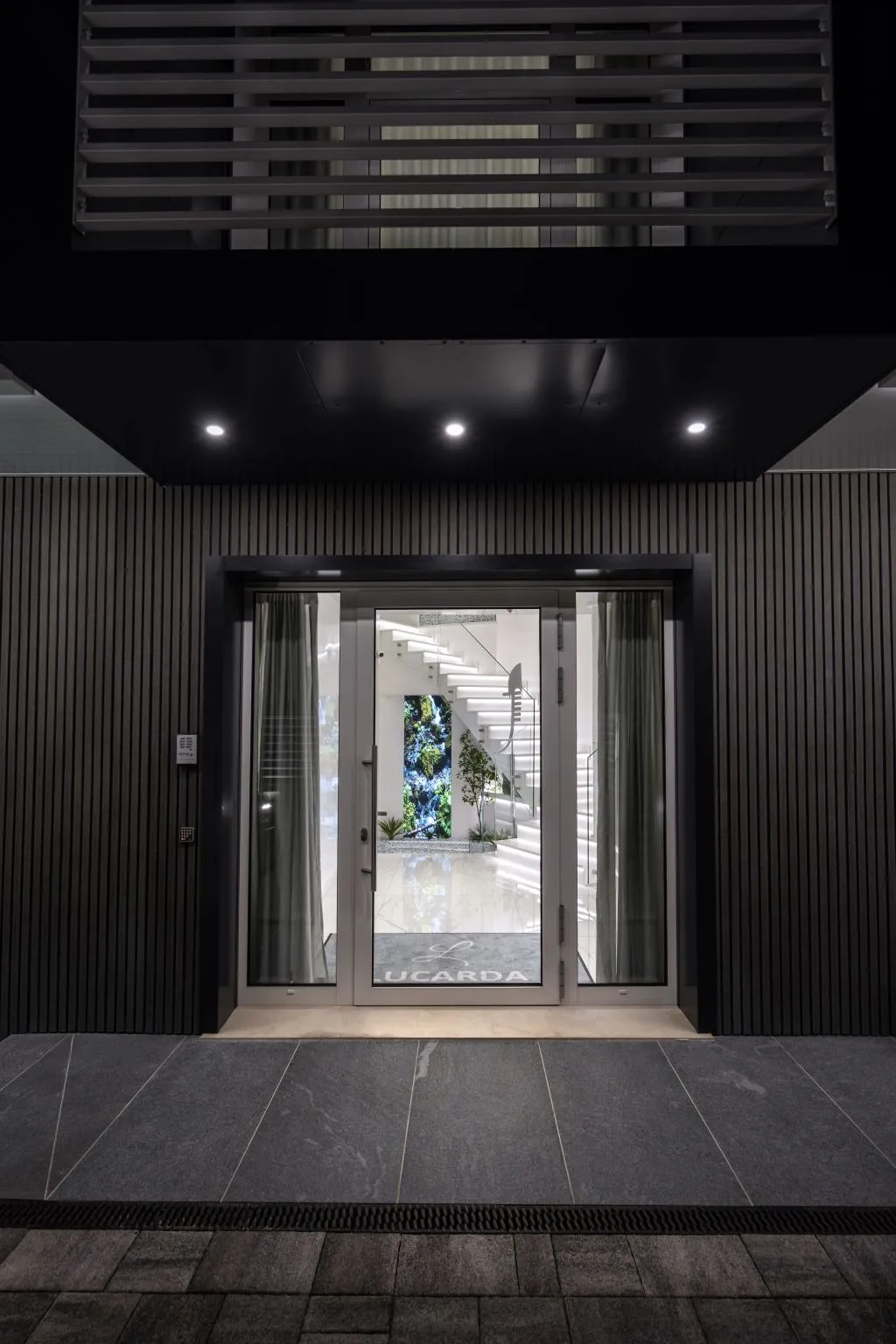 A rappresentare il tema della Natura, è stata progettata una parete di verde stabilizzato arricchita da una cascata d'acqua riprodotta su moderni schermi led-wall. All'esterno della struttura è inoltre presente uno spazio verde, allestito con piante sempreverdi.